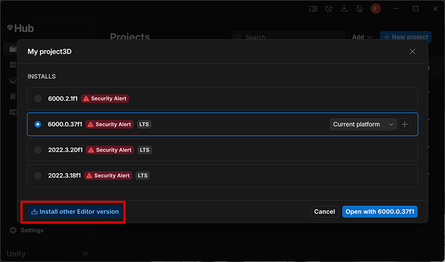 예를 들어, 업데이트 하고자 하는 유니티의 버전이 6000.0.37f1